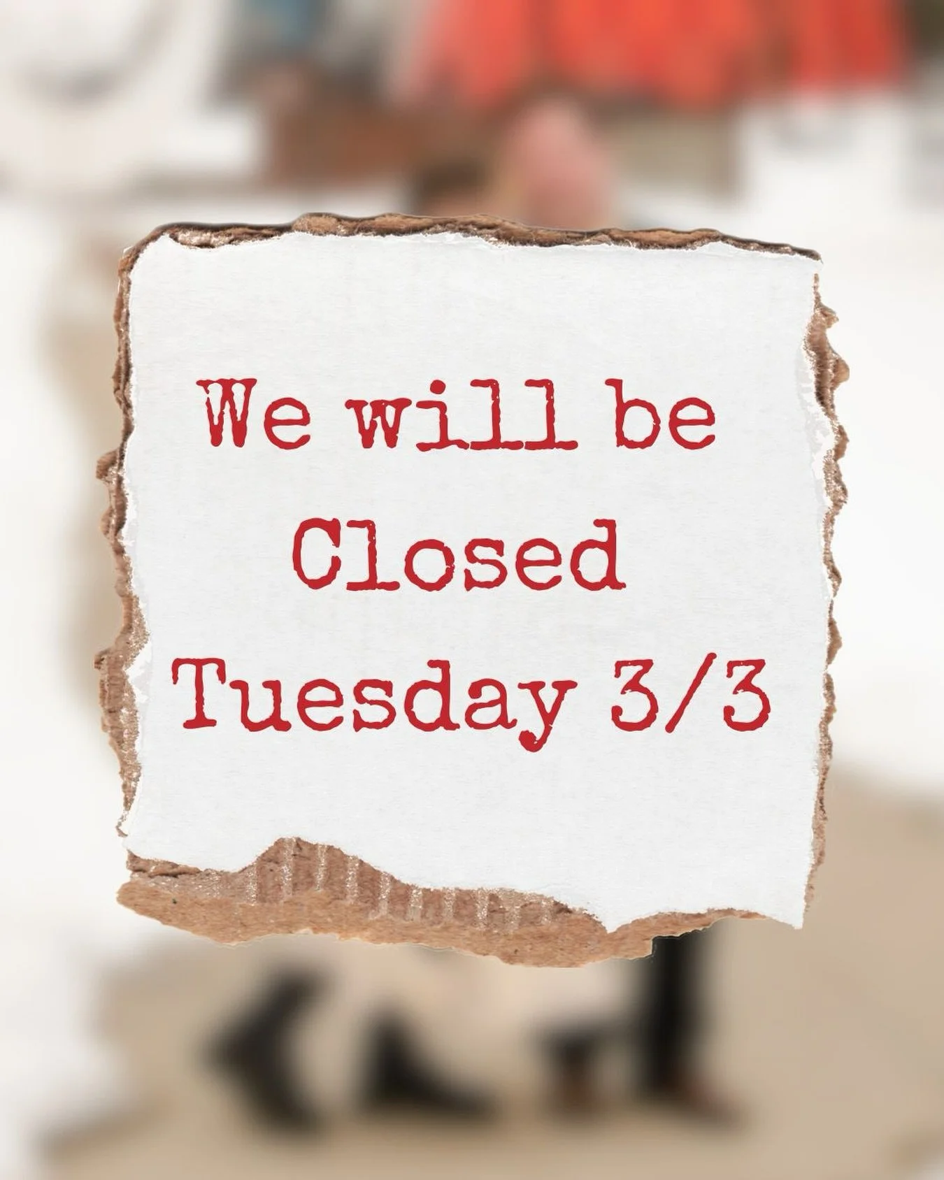 View fullsize Hey all, we’ll be closed Tuesday 3/3 but back Wednesday 3/4.